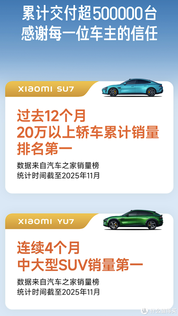 小米在2024年和2025年分别发布了小米SU7和小米YU7,其中小米SU7为中大型车,小米YU7为中大型SUV,两款车型分别对标特斯拉Model 3和特斯拉Model Y;从销量上来看,小米SU7已经超过特斯拉Model 3,但小米YU7目前还没有超过特斯拉Model Y(当然,去年有一个月的销量超过了特斯拉Model Y,官方还对此进行宣传)。