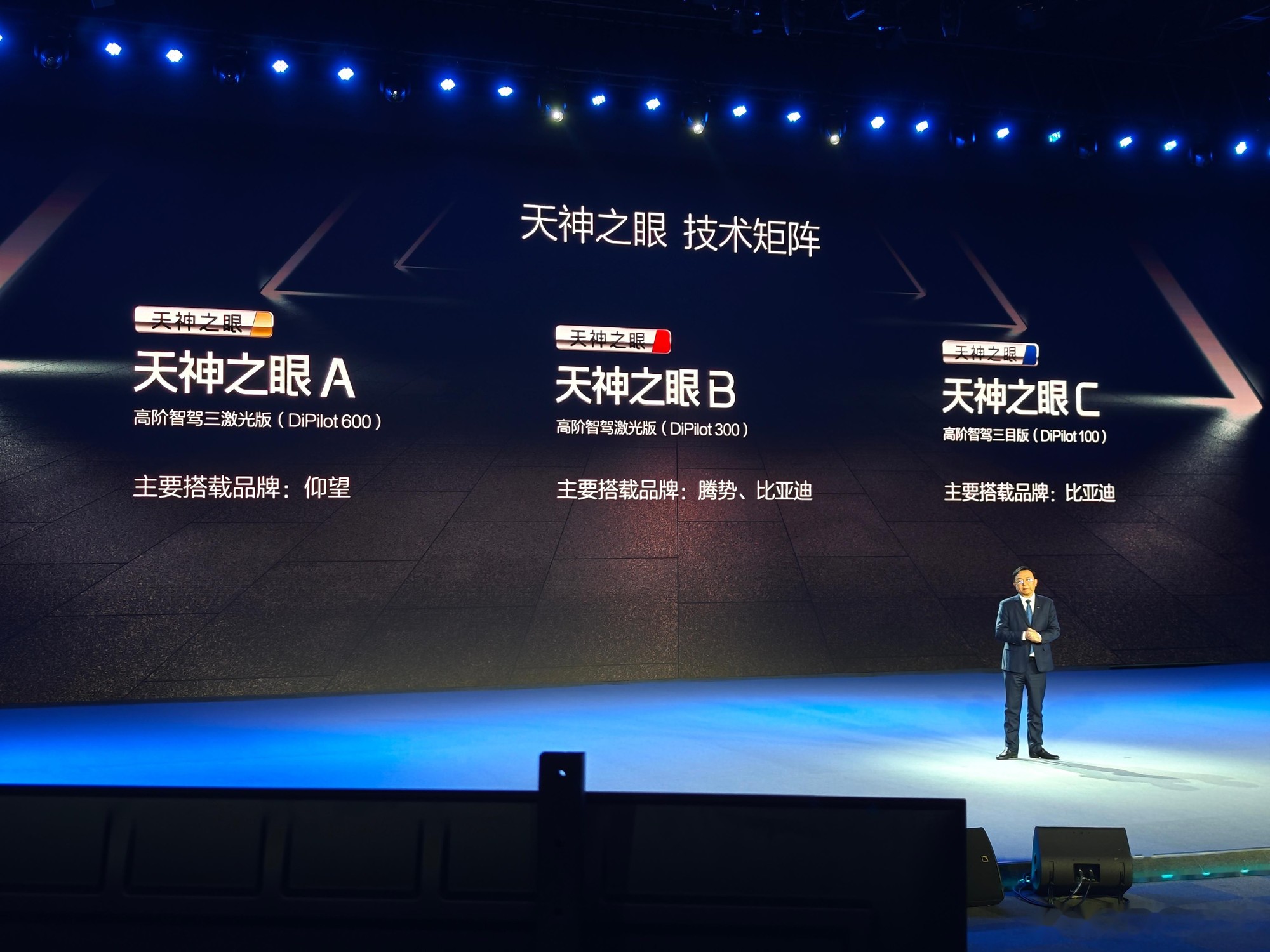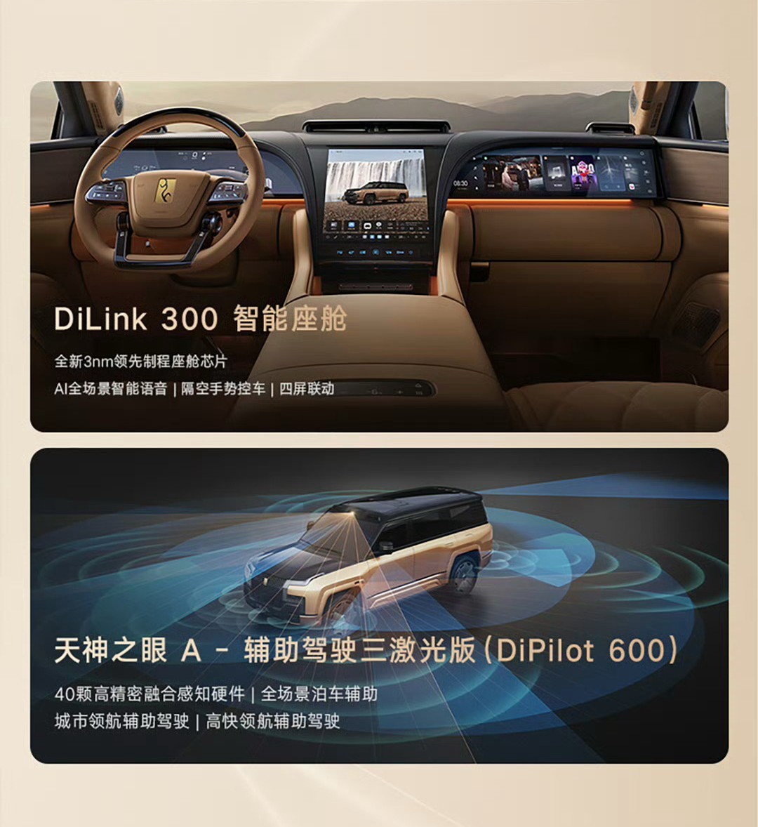 B方案(单激光雷达):覆盖腾势30-40万元价格区间,采用单OrinX芯片+1颗激光雷达的组合,实现高速+城区双模领航,硬件成本压缩,平衡了性能体验与价格门槛,基本覆盖了市面主流高阶辅助驾驶的所有功能,并且还有易三方技术这类打出差异化的配置,是天神之眼辅助驾驶系统的中流砥柱。