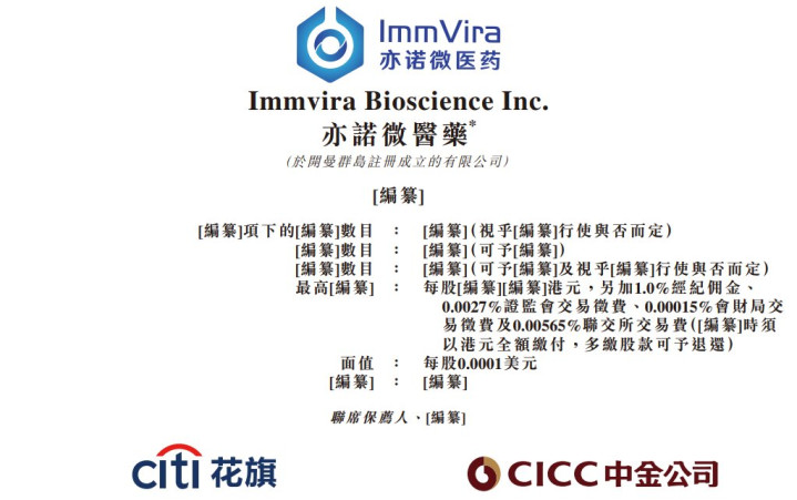 据港交所1月14日披露,ImmviraBioscienceInc.(简称:亦诺微医药)向港交所主板递交上市申请,花旗、中金公司为其联席保荐人。据悉,亦诺微医药曾于2025年6月25日向港交所主板提交上市申请。